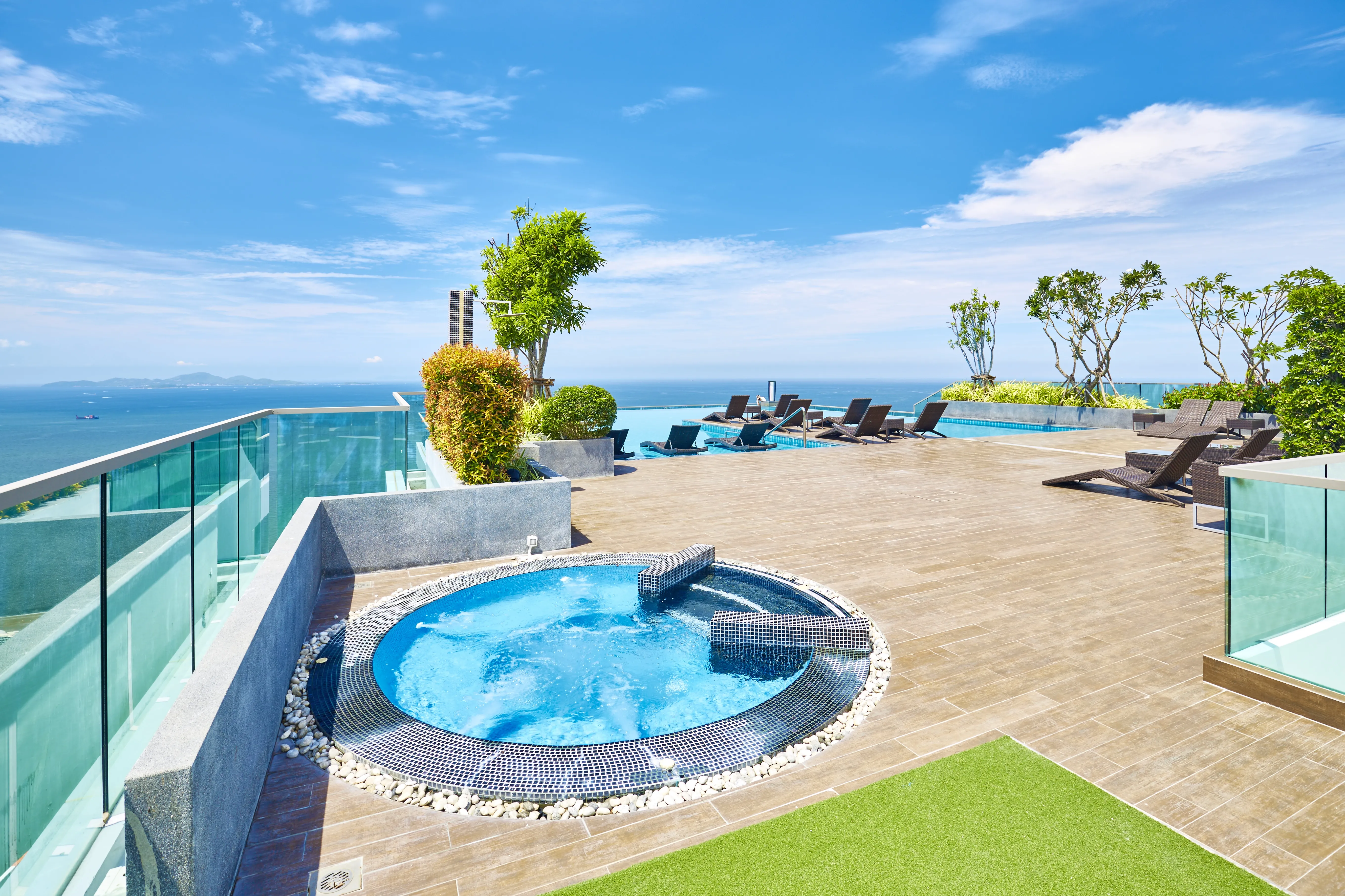 Great view. If I had the cash I would buy one of these condominiums. The view is terrific the two pools refreshing and the staff is friendly.